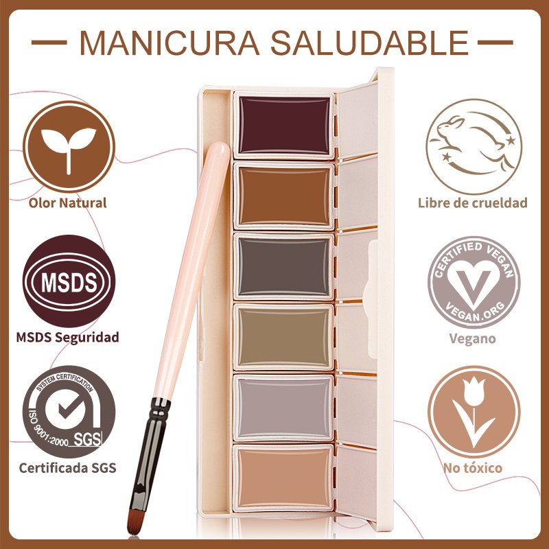 2.Solid Gel Polish Palette 6 in 1 Cream Soak Off Semi Permanent UV LED Lamp Paint Nail Gel Palette Of Hybrid Varnishes